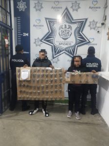 Ante estos dos hechos constitutivos del delito, los elementos policiales procedieron a la legal detención de José Ángel N., de 25 años de edad y Pilar Guadalupe N., de 20 años de edad.