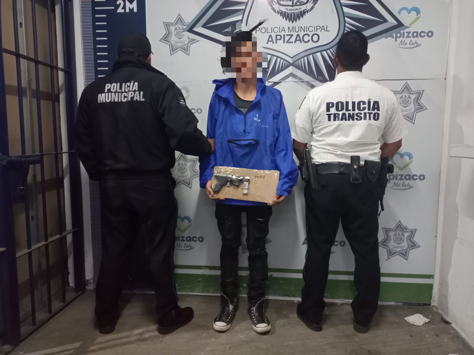 La detención tuvo lugar en la calle Benito Juárez, en la comunidad de San Luis Apizaquito, donde los oficiales observaron a un individuo con comportamiento sospechoso. Siguiendo los protocolos y respetando los derechos del sujeto, los oficiales informaron a David N. que su presencia había sido reportada por vecinos. Durante una revisión corporal, se le encontró un arma tipo escuadra. Al solicitarle su permiso de portación, el individuo manifestó no tenerlo.