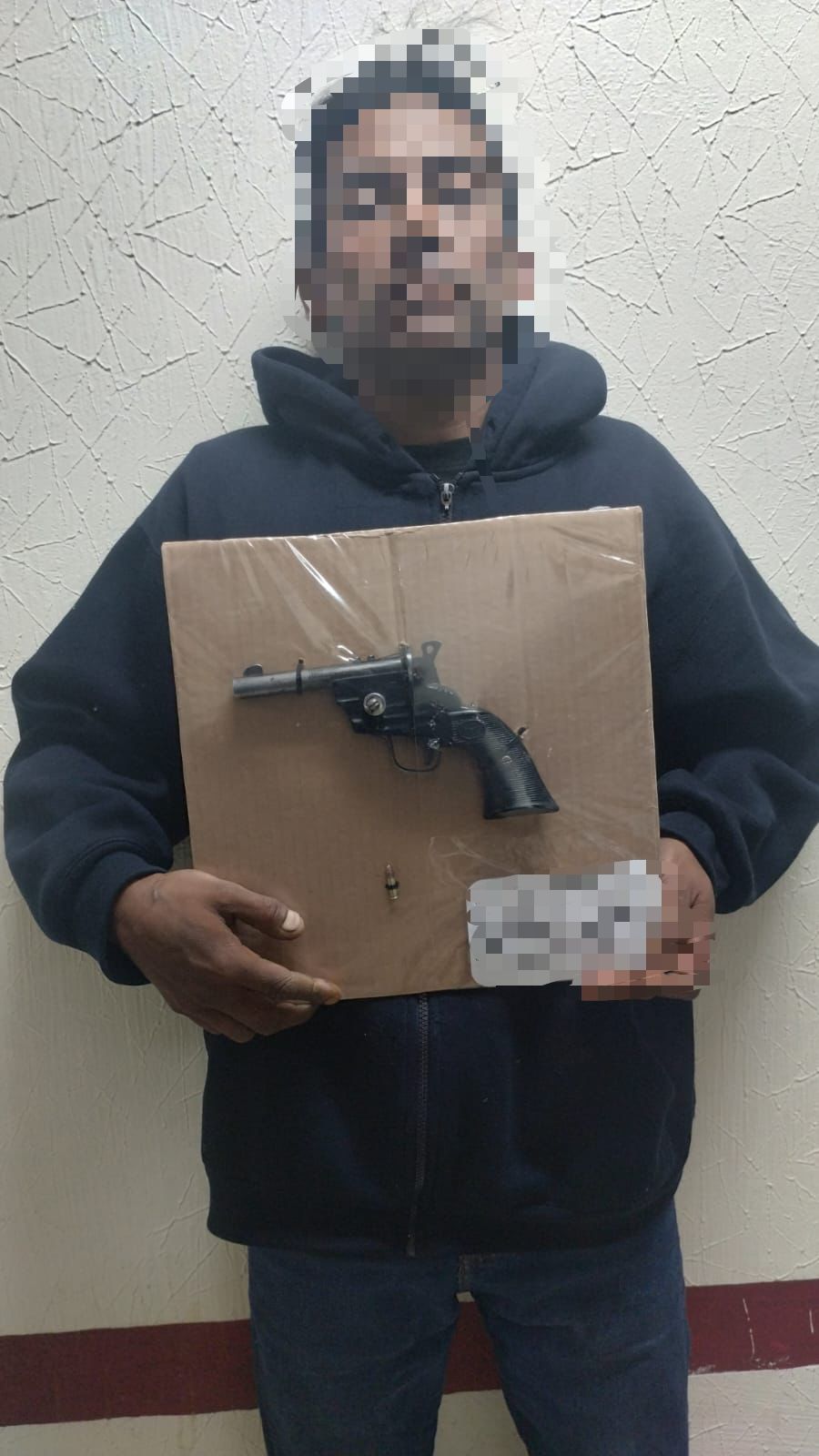 Durante la revisión preventiva, se le encontró un objeto con las características de un arma de fuego abastecida con un cartucho útil calibre 22. En consecuencia, fue detenido y se le leyeron sus derechos correspondientes.
