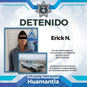Al estar ante un hecho constitutivo de delito de robo, se realiza el aseguramiento a Erick N., junto con la lectura de sus derechos; por lo que fue trasladado a la Comisaría municipal para ser puesto a disposición del Ministerio Público.