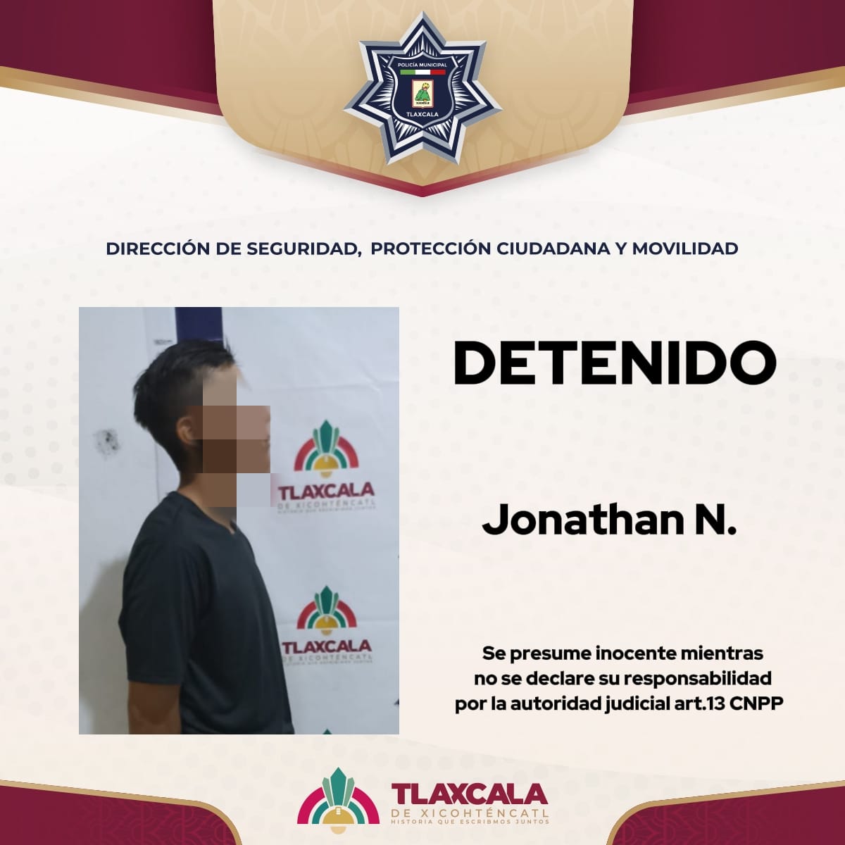 Tlaxcala, Tlax; 09 de agosto de 2025 (PulsoRed) Mediante un reporte al número de emergencias y gracias a la pronta respuesta de la Policía Municipal de Tlaxcala, se logró la detención de un hombre de 25 años de edad, que presuntamente despojó de su teléfono celular a una joven en el centro de la ciudad.