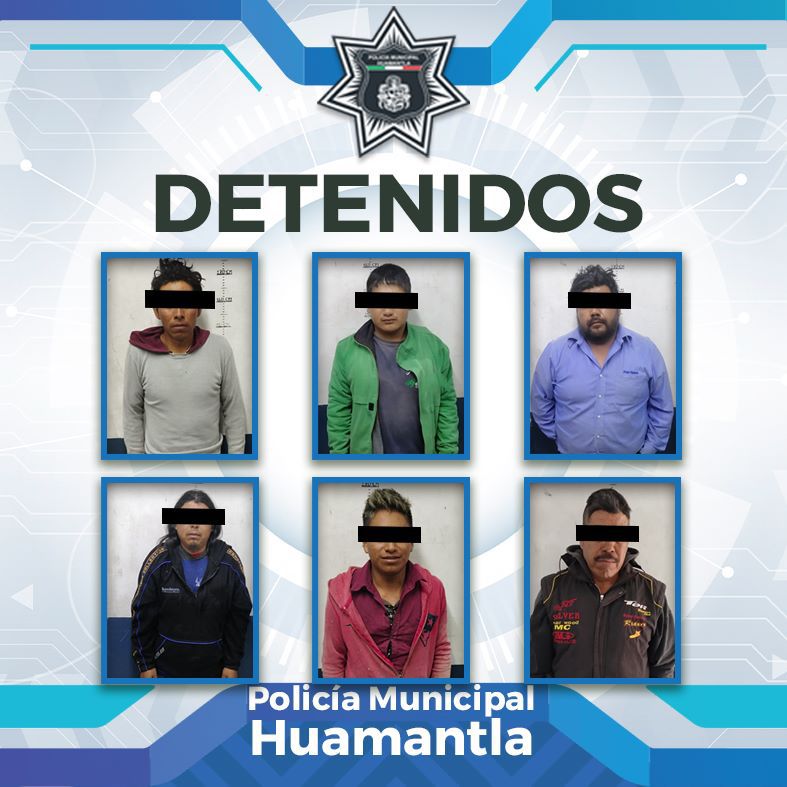 Por tal situación, Humberto N. de 38 años, Ramiro N. de 19 años, Israel N. de 38 años, Nicolás N. de 43 años, Antonio N. de 31 años, y Efrén N. de 22 años, fueron presentados ante la autoridad correspondiente, lo mismo que una camioneta tipo RAM color blanca con placas de circulación del estado de Puebla.