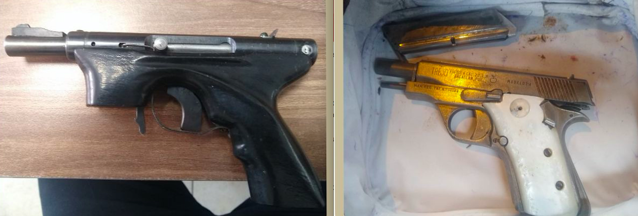 Tlaxcala, Tlax; 30 de octubre de 2021 (Pulso) La Secretaría de Seguridad Ciudadana (SSC) detuvo en el municipio de Ixtacuixtla a dos presuntos responsables de posesión y portación ilegal de armas de fuego, luego de que elementos de la Dirección de Policía Estatal de Caminos y Vialidad que realizaban filtros de inspección vehicular sobre carretera federal San Martín-Tlaxcala, detectaron un vehículo con dos personas a bordo, que portaba luces de uso exclusivo para vehículos policiales y de emergencia.Por lo anterior, personal de la SSC procedió a indagar la situación y mediante una inspección preventiva localizaron en la unidad vehicular un cartucho percutido y dos armas de fuego, de las cuales los sujetos identificados como Wilmer N. y Neptalí N., de 31 y 24 años de edad, respetivamente, mencionaron de viva voz no contar con documentación alguna que acreditara la portación y posesión legal de las armas.