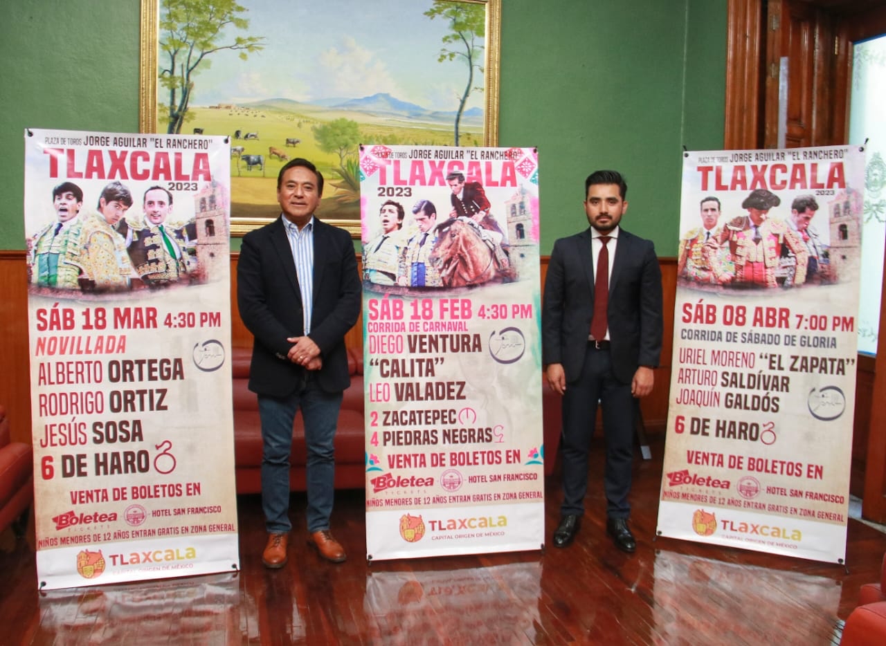 Tlaxcala, Tlax; 27 de enero de 2023 (PulsoRed) El presidente municipal de Tlaxcala, Jorge Corichi, y el director operativo de la empresa Feria Toro, Othón Ortega Salinas, develaron las combinaciones de lo que será el resto del serial taurino que inicia este sábado 28 de enero en la emblemática Plaza de Toros Jorge Aguilar, “El Ranchero”.
