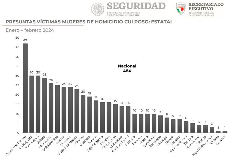 Según el informe de la dependencia de Gobierno Federal, en los primeros dos meses del 2024, ocurrieron dos homicidios dolosos y cinco culposos de mujeres, sin embargo, en el ámbito local, de enero a marzo se contabilizaron 10 muertes de mujeres.
