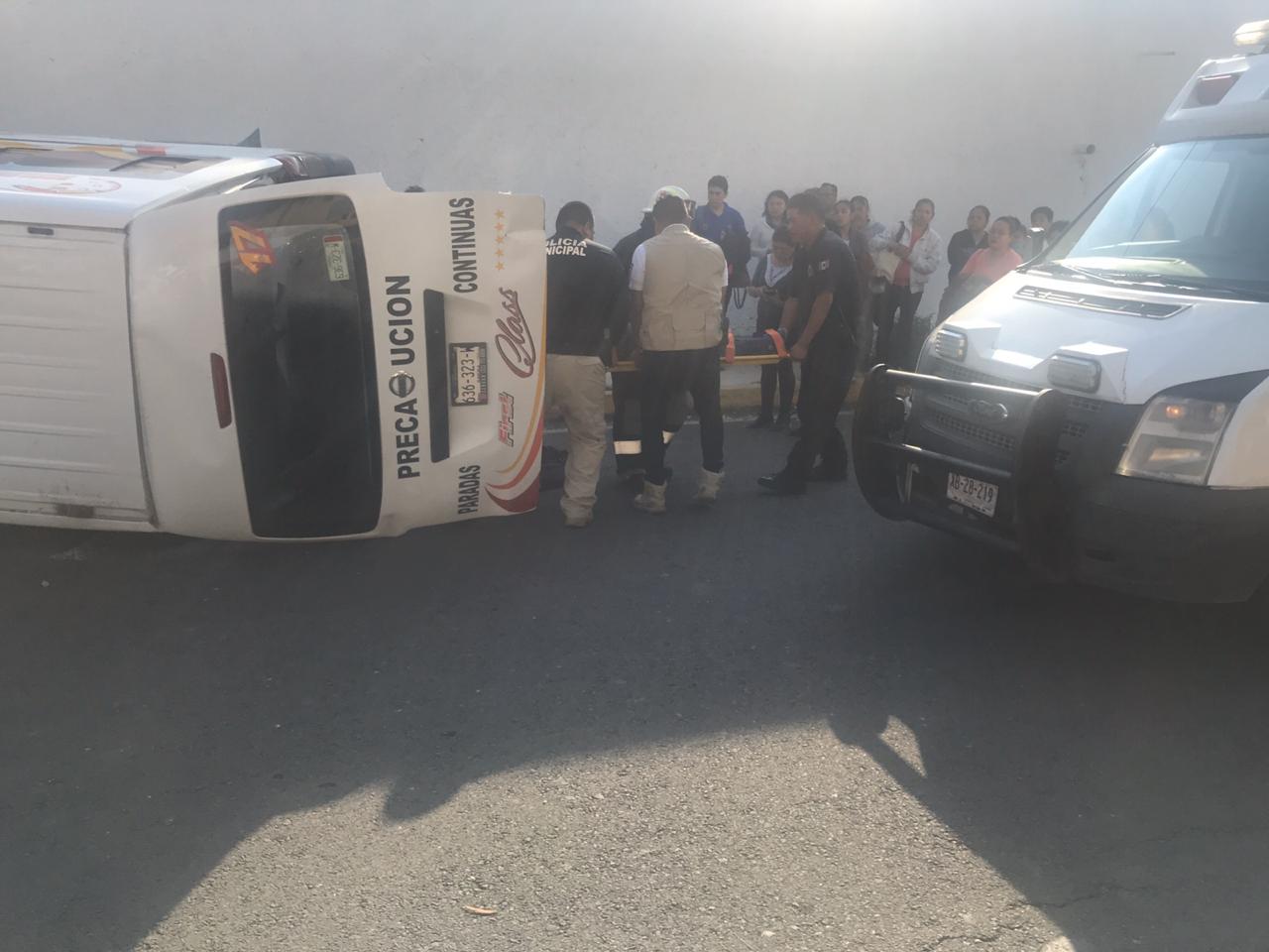 Xiloxoxtla, Tlax., 10 de diciembre de 2019 (Rommel Pichardo) Un hombre y una mujer resultaron lesionados luego de que una unidad de transporte público volcara al presentar una falla mecánica mientras circulaba por el corredor industrial ubicado en el municipio de Xiloxoxtla.