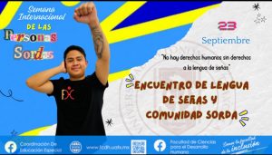 El programa incluyó la participación del Maestro José Edgar Luna Rodríguez, activista y docente de LSM, con la conferencia magistral sobre “Cultura sorda, derechos humanos y resiliencia”; Licenciado Diego Alonso González Contreras, docente de la Licenciatura en Educación Especial, quien impartió un taller vivencial con expresiones básicas en diferentes lenguas de señas: Mexicana, brasileña, francesa, americana y japonesa.