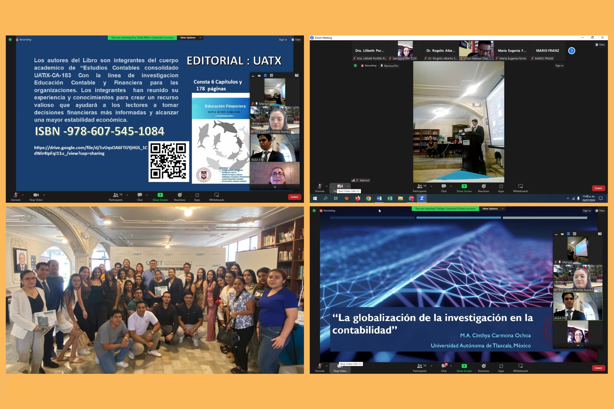 De igual manera, la Maestra Cinthya Carmona Ochoa, disertó la ponencia «La globalización de la investigación en la contabilidad», contribuyendo con sus conocimientos y experiencias al enriquecimiento del intercambio académico.