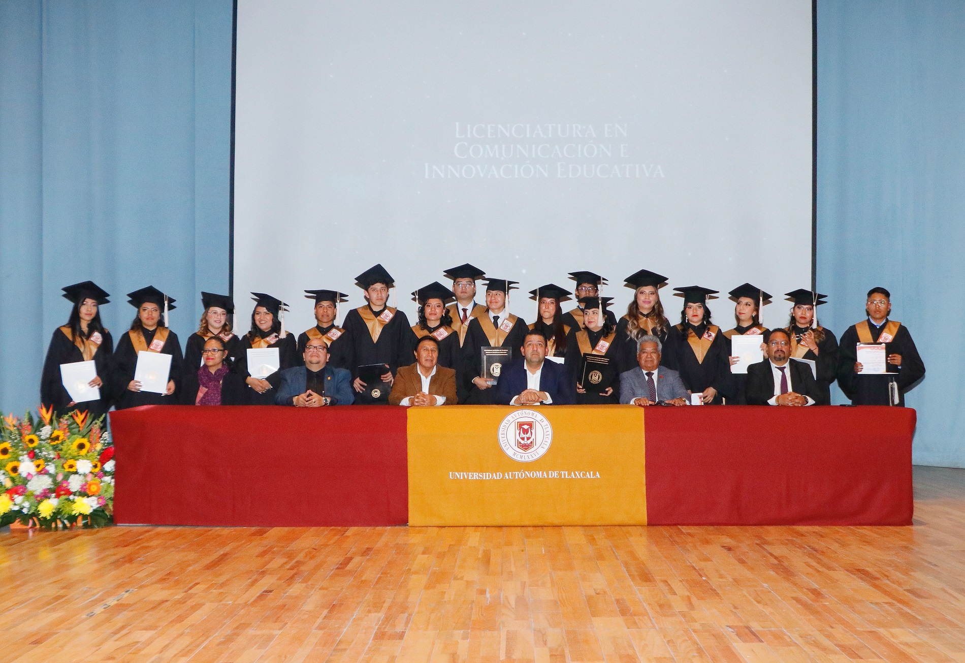 A esta ceremonia, se dieron cita los integrantes de la estructura directiva de la UATx y de la Facultad de Ciencias de la Educación, académicos y familiares de los graduandos.