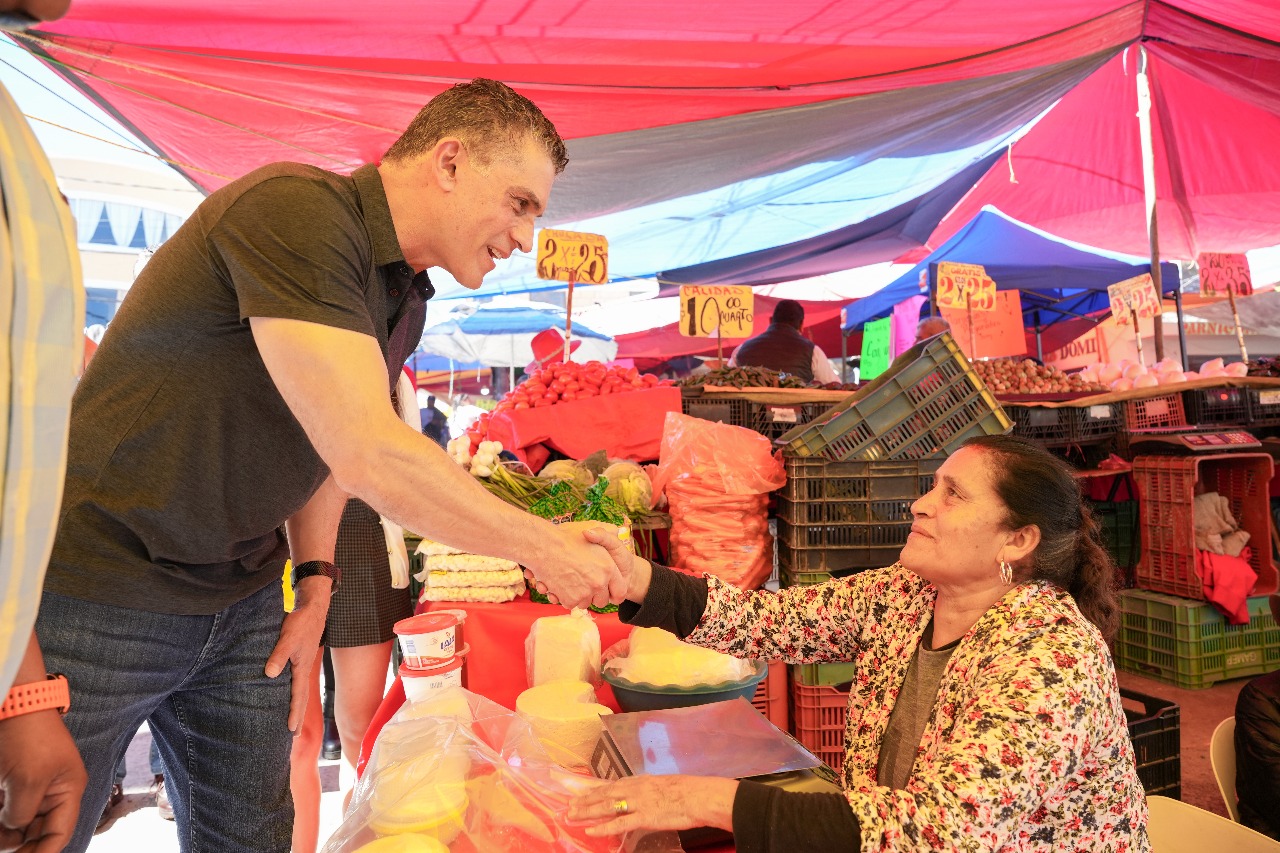 Acompañado por titulares de distintas áreas del Ayuntamiento, el alcalde saludó personalmente a hombres y mujeres dedicados a la venta de frutas, verduras, abarrotes, comida y ropa, así como a amas de casa, con quienes platicó sobre las condiciones del lugar y del entorno urbano. Entre los planteamientos más frecuentes destacaron la mejora de calles, el alumbrado público y la necesidad de reforzar la seguridad.