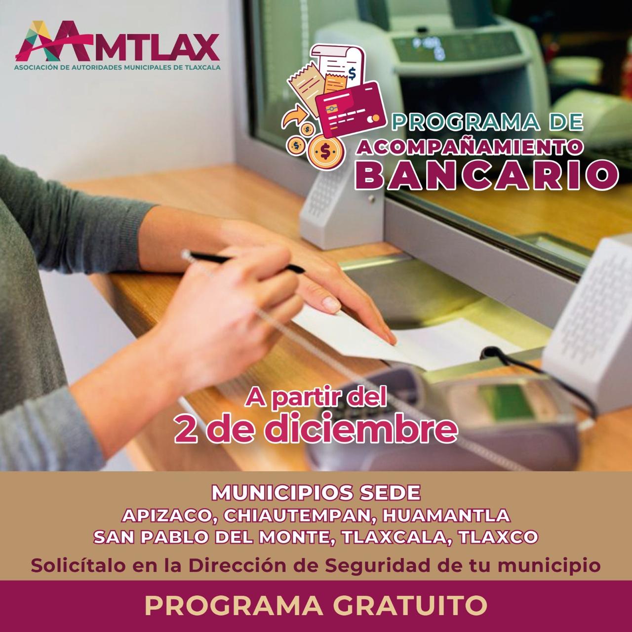 Este programa se implementará en los municipios de Tlaxcala, Apizaco, Chiautempan, Huamantla, San Pablo del Monte y Tlaxco, que concentran las sucursales de los bancos con mayor cartera de clientes en el estado.