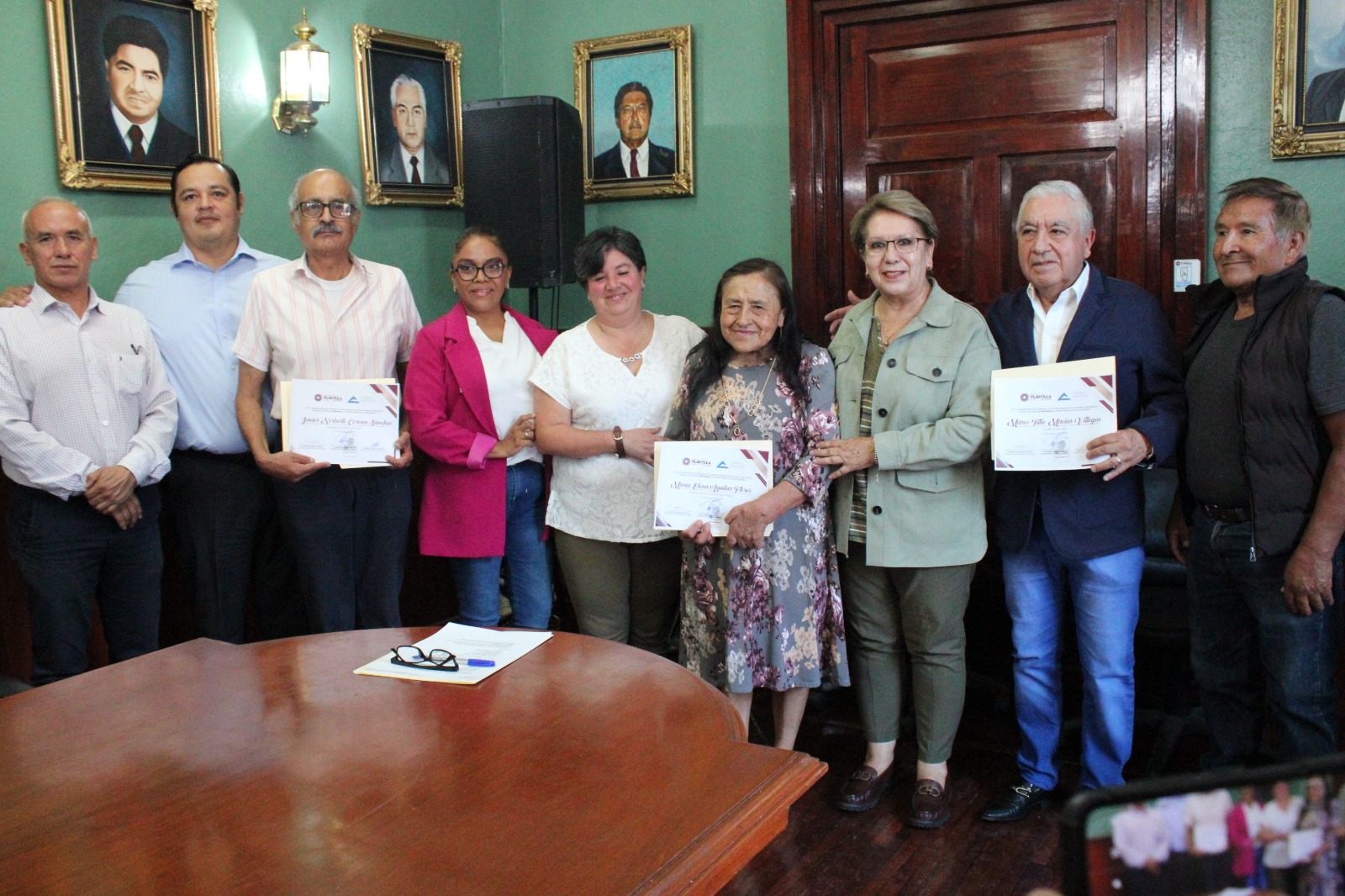 La presidenta municipal de Tlaxcala, Maribel Pérez Arenas, y el presidente de la Canaco-Servytur, Joseph Rodríguez Ramos, entregaron reconocimientos a Javier Norberto Corona Sánchez de la Papelería Mary Carmen por 21 años de trabajo; Marco Tulio Macías Villegas del Café Avenida por 35 años de experiencia y María Elena Aguilar Flores de Desayunos y Antojitos Mary por 41 años de servicio.
