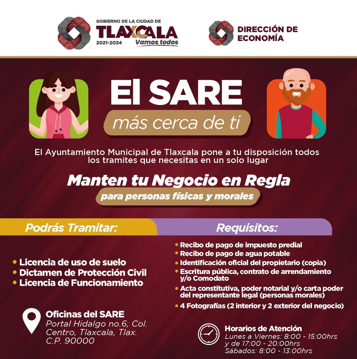 Los interesados aperturar nuevas licencias o realizar sus refrendos, pueden acudir al módulo SARE que forma parte de la Dirección de Economía en un horario de lunes a viernes de 8:00 a 15:00 y de 17:00 a 20:00 horas y sábado de 8:00 a 13:00 horas.