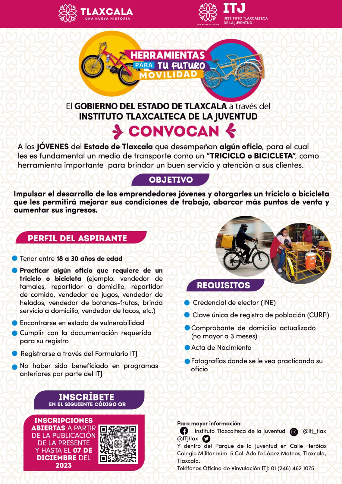 La directora del ITJ, Lucero Morales Tzompa invita a los jóvenes que se desempeñan en oficios donde el uso de triciclos o bicicletas es esencial, a participar activamente en esta convocatoria.