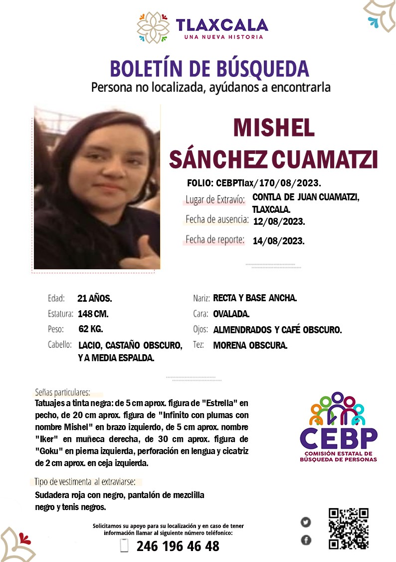 Tlaxcala, Tlax; 15 de agosto de 2023 (PulsoRed) Emiten boletín de búsqueda para dos jovencitas, que desde el día sábado salieron del trabajo y no han regresado.