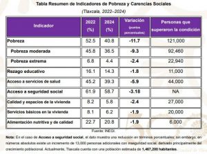 “Este comportamiento positivo y simultáneo en todos los indicadores evidencia una mejora integral en las condiciones de vida de la población, resultado de políticas públicas focalizadas, intervenciones estratégicas y una efectiva coordinación interinstitucional”, indicó la Secretaría de Bienestar en Tlaxcala, que recordó que el combate a la pobreza ha sido uno de los principales retos que el gobierno de Lorena Cuéllar ha enfrentado con determinación.