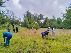 En jornada de reforestación en Chiautempan, son plantados más de 400 árboles de piñón