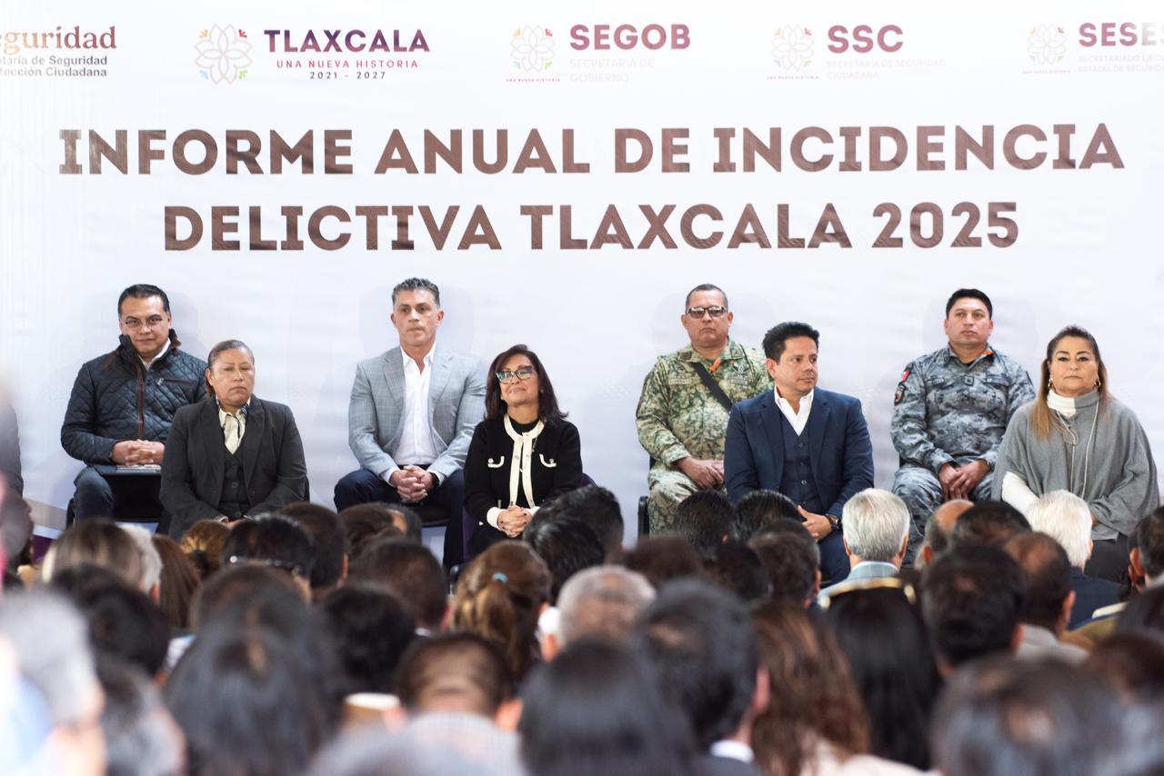 *Autoridades presentan el Informe Anual de Incidencia Delictiva Tlaxcala 2025; Lorena Cuéllar anuncia reforzamiento de patrullajes, iluminación, operativos y tecnológica, para que la seguridad que muestran los datos se sienta en la calle