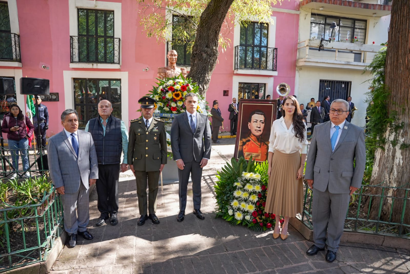Como parte de la ceremonia, el alcalde Alfonso Sánchez García junto con el secretario de Educación Pública, Homero Meneses Hernández, y la diputada Aurora Villeda Temoltzin, vicepresidenta del Congreso del Estado, montaron guardia de honor ante el busto del héroe tlaxcalteca.