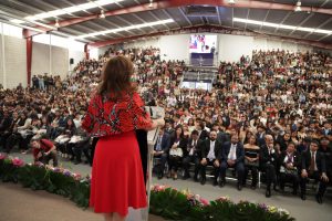“Son 5 mil 200 jóvenes quienes hoy concluyen sus estudios. Por primera vez, se buscó el mecanismo para que todos en este momento tuvieran sus certificados de manera electrónica, facilitando también el acceso a sus documentos”, resaltó la titular del Ejecutivo.