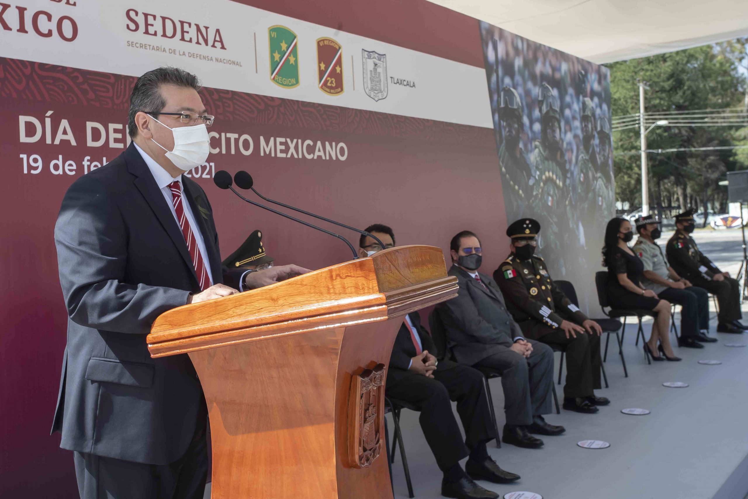 A nombre de los tlaxcaltecas, el Gobernador Marco Mena felicitó al Ejército Mexicano por su calidad, capacidad, honorabilidad y lealtad, valores que lo distinguen como una de las mejores y más fuertes instituciones del país con reconocimiento internacional.