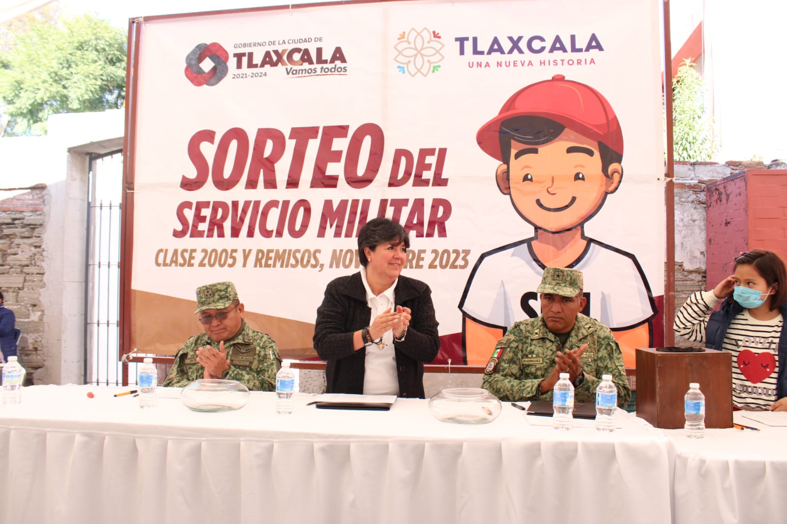 Tlaxcala, Tlax; 26 de noviembre de 2023 (PulsoRed) La presidenta municipal de Tlaxcala, Maribel Pérez Arenas, encabezó este domingo el Sorteo del Servicio Militar Nacional Clase 2005 y Remisos, en el que 127 conscriptos fueron elegidos con bola blanca y 271 negras para un total de 398 jóvenes que acudieron para cumplir con esta disposición cívica constitucional.