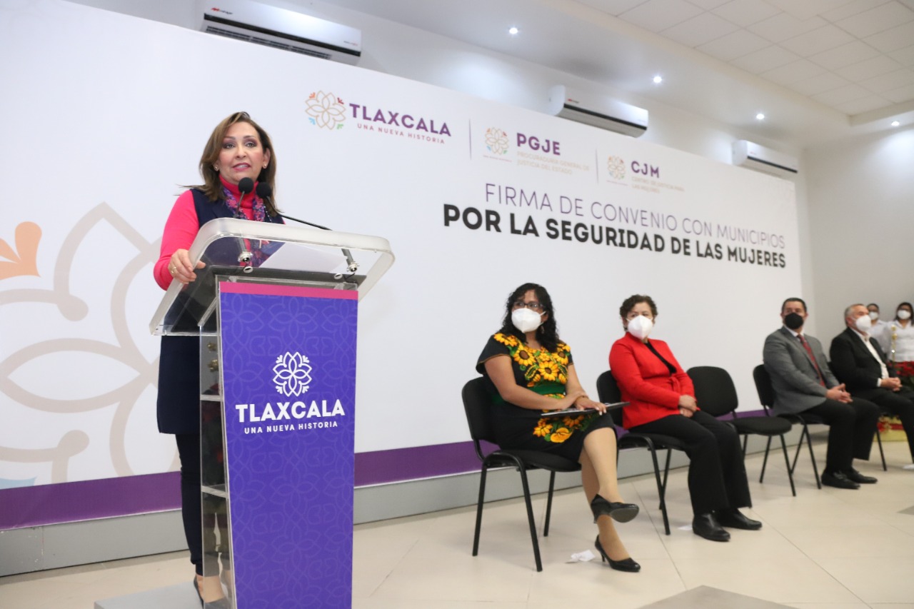 Tlaxcala, Tlax., 10 de diciembre de 2021 (Pulso Red) La gobernadora Lorena Cuéllar Cisneros firmó como testigo de honor el convenio de colaboración “Por la Seguridad de las Mujeres” con los 60 municipios del estado, en coordinación con la Procuraduría General de Justicia del Estado (PGJE) y el Centro de Justicia para las Mujeres (CJM), con la finalidad de conjuntar esfuerzos e incorporar el proyecto 2022 de “Municipios Naranja”, para garantizar que las personas del sexo femenino reciban ayuda.