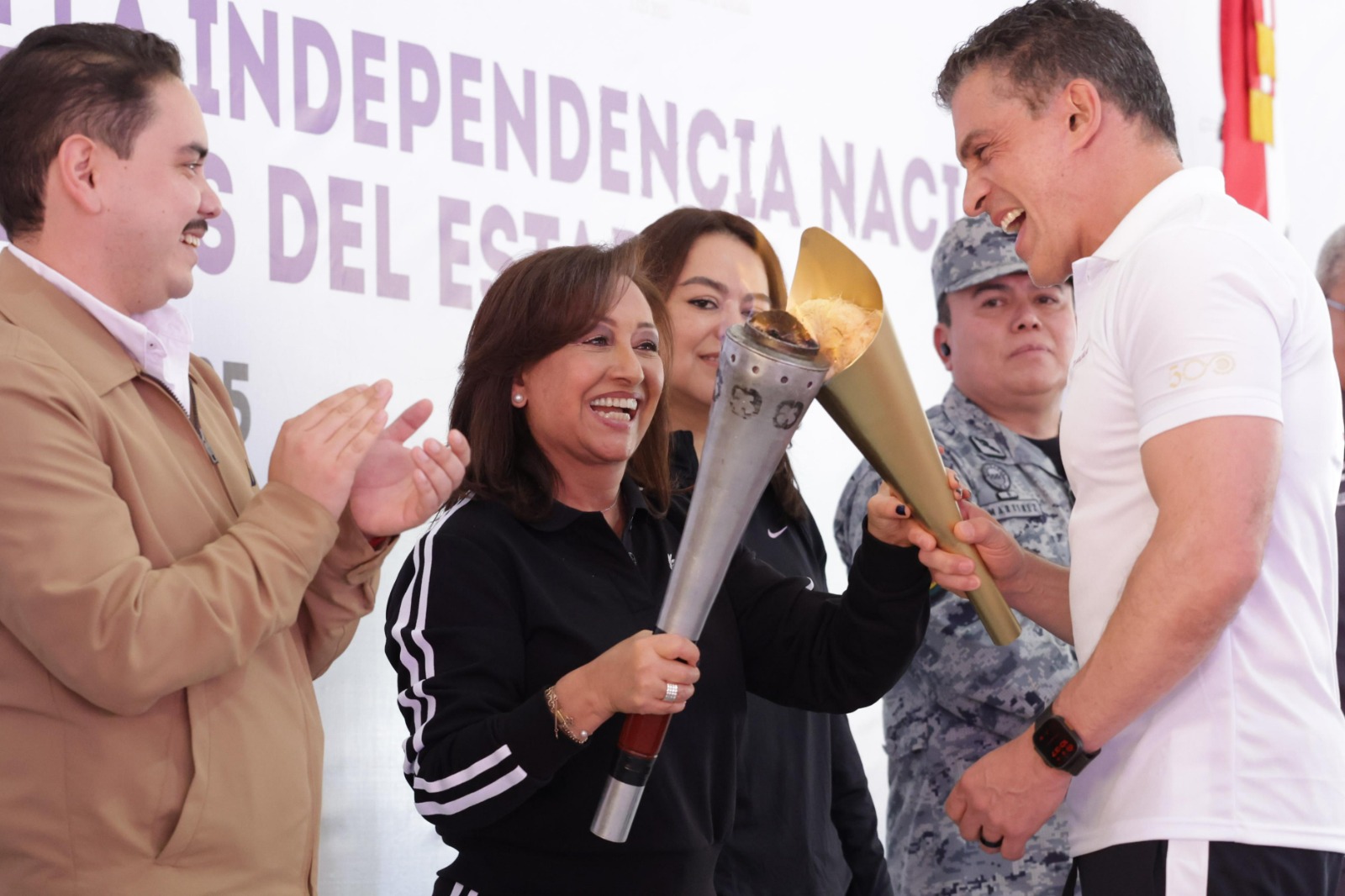 Autoridades municipales, acompañadas por integrantes de sus respectivos cabildos y personal del ayuntamiento, trasladaron el fuego simbólico a sus localidades, como parte de los festejos del 215 aniversario del inicio de la Independencia de México.