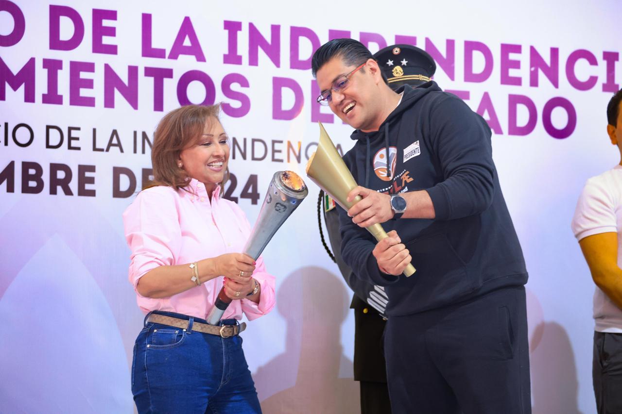 Tlaxcala, Tlax; 15 de septiembre de 2024 (PulsoRed) La gobernadora Lorena Cuéllar Cisneros, acompañada de autoridades de los tres poderes de gobierno, entregó el fuego simbólico de Independencia Nacional a los 60 ayuntamientos del estado, el cual representa la memoria de los actos heroicos durante la lucha para consolidar a México como una nación independiente.