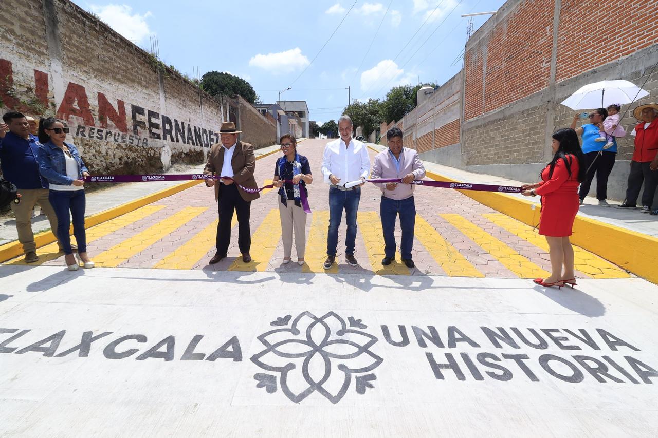 En Tocatlán, la gobernadora realizó la entrega de la primera etapa de la sustitución de pavimento con adoquín de la calle Xicohténcatl con una inversión superior a 1.4 millones de pesos provenientes del programa Peso a Peso, que beneficiará a 6 mil 294 habitantes.