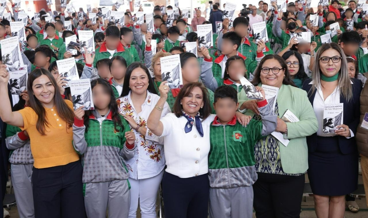 Desde la Secundaria General “Felipe Santiago Xicohténcatl”, en el municipio de Zacualpan, la mandataria celebró los avances en la participación de las mujeres en diversos ámbitos, como la seguridad, el servicio público y el liderazgo político, destacando la presencia de la primera mujer presidenta de México.