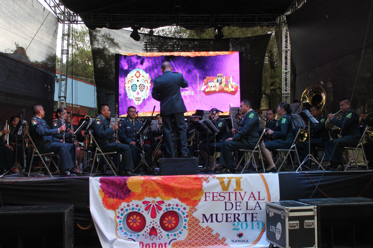 Tlaxcala, Tlax; 25 de octubre de 2019 (Pulso) Este viernes, se presentó con gran éxito la banda musical de la Sexta Región Militar en la Plaza Xicohténcatl como parte de los eventos del “VI Festival de la Muerte” que organizó la cuarta regiduría del ayuntamiento de Tlaxcala, la cual amenizó el momento con un gran repertorio musical.