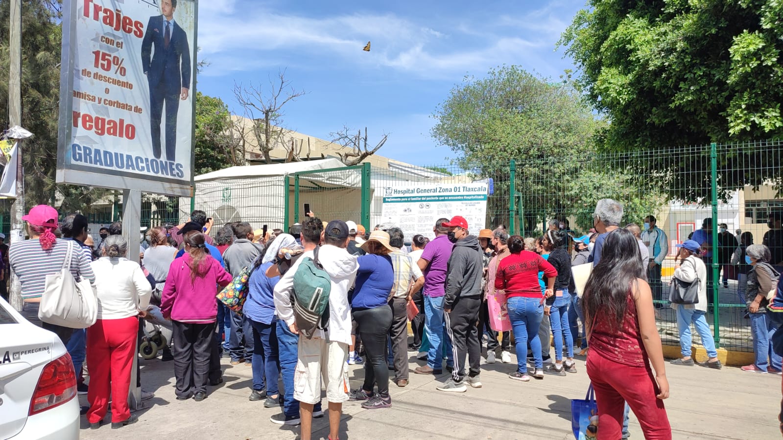 Tlaxcala, Tlax; 11 de junio de 2024 (Selene Sosa) Varias decenas de personas se manifestaron este martes a las afueras de Hospital General de Zona No. 01 del Instituto Mexicano del Seguro Social (IMSS), para exigir que sus familiares, pacientes renales, continúen recibiendo atención de la clínica «Esterinova».