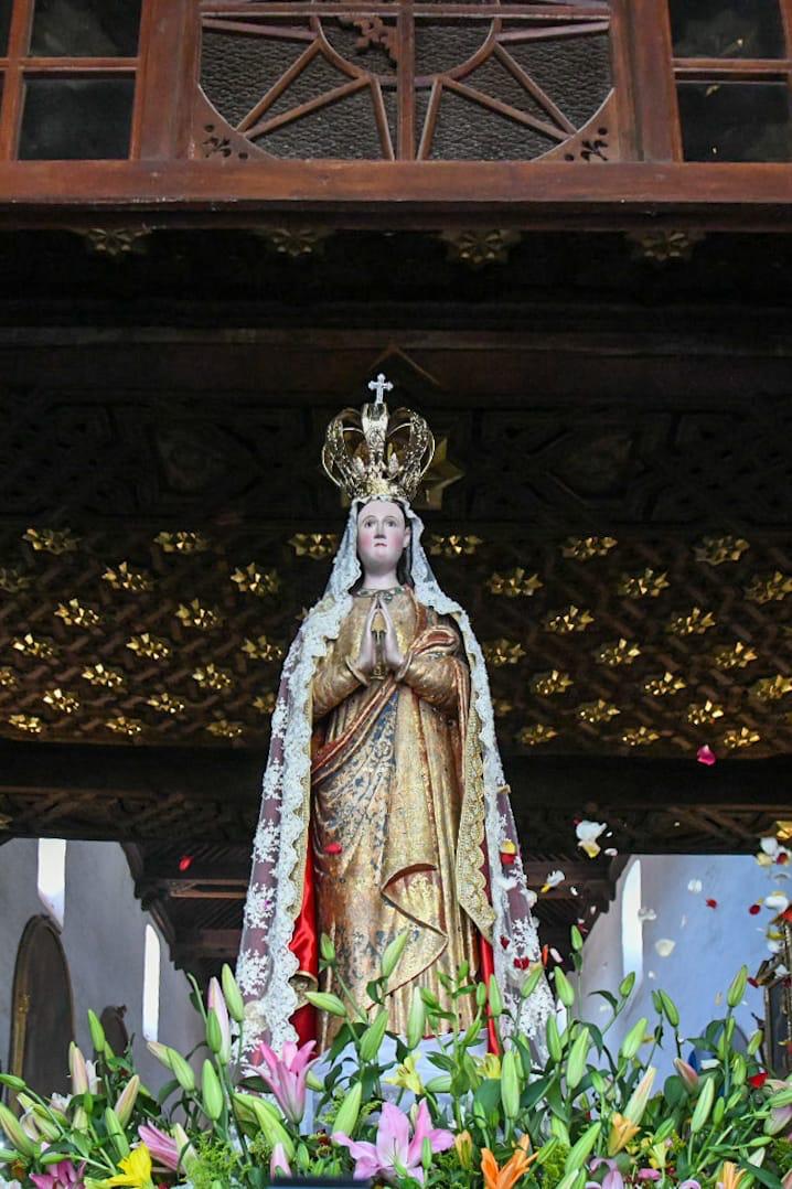 Acompañada por miles de peregrinos, la Virgen visitó templos como la Parroquia de San José y el Conjunto Conventual y Catedralicio de Nuestra Señora de la Asunción, hoy patrimonio de la humanidad, donde se celebraron misas especiales y actos litúrgicos, mientras los fieles expresaban su profunda fe y gratitud.