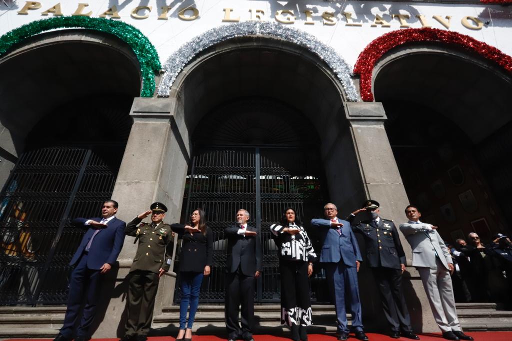 Posteriormente, hicieron lo propio en las instalaciones del Tribunal Superior de Justicia del Estado (TSJE), del ayuntamiento capitalino y del Congreso del estado, con lo que comenzaron formalmente los eventos cívicos, artísticos y sociales.