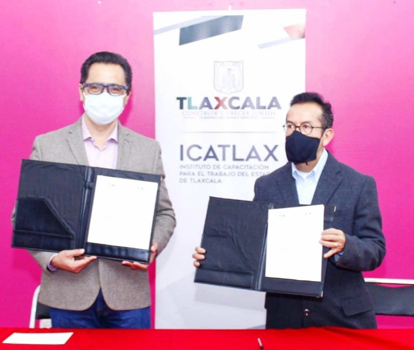 Tlaxcala, Tlax; 6 de enero de 2021 (Pulso) Con el objetivo de promover entre el sector artesanal de Tlaxcala programas de formación para el empleo, el Director General del Instituto de Capacitación para el Trabajo del Estado de Tlaxcala (Icatlax), Manuel Camacho Higareda, y el titular de la Casa de las Artesanías de Tlaxcala (CAT), José Luis Sánchez Mastranzo firmaron un convenio de colaboración.