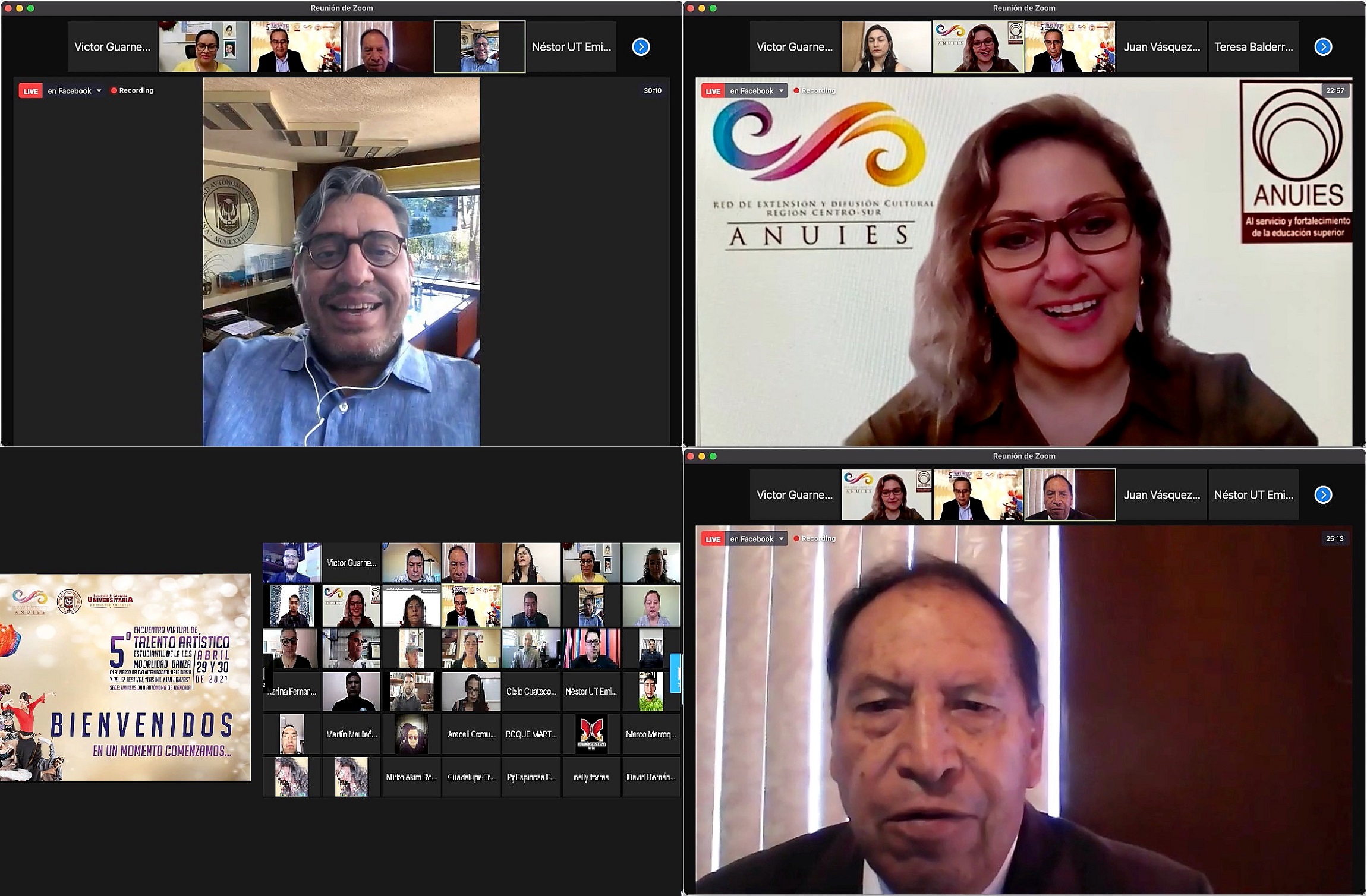 Tlaxcala, Tlax; 29 de abril de 2021 (Pulso) El Dr. Luis González Placencia, Rector de la Universidad Autónoma de Tlaxcala (UATx) y Presidente del Consejo Regional Centro-Sur de la Asociación Nacional de Universidades e Instituciones de Educación Superior (ANUIES), inauguró el “V Encuentro virtual de talento artístico de las IES modalidad danza”, organizado por la Secretaría de Extensión Universitaria y Difusión Cultural, de manera conjunta con la Facultad de Ciencias Básicas, Ingeniería y Tecnología, así como con la Red de Extensión y Difusión Cultural de esta zona.