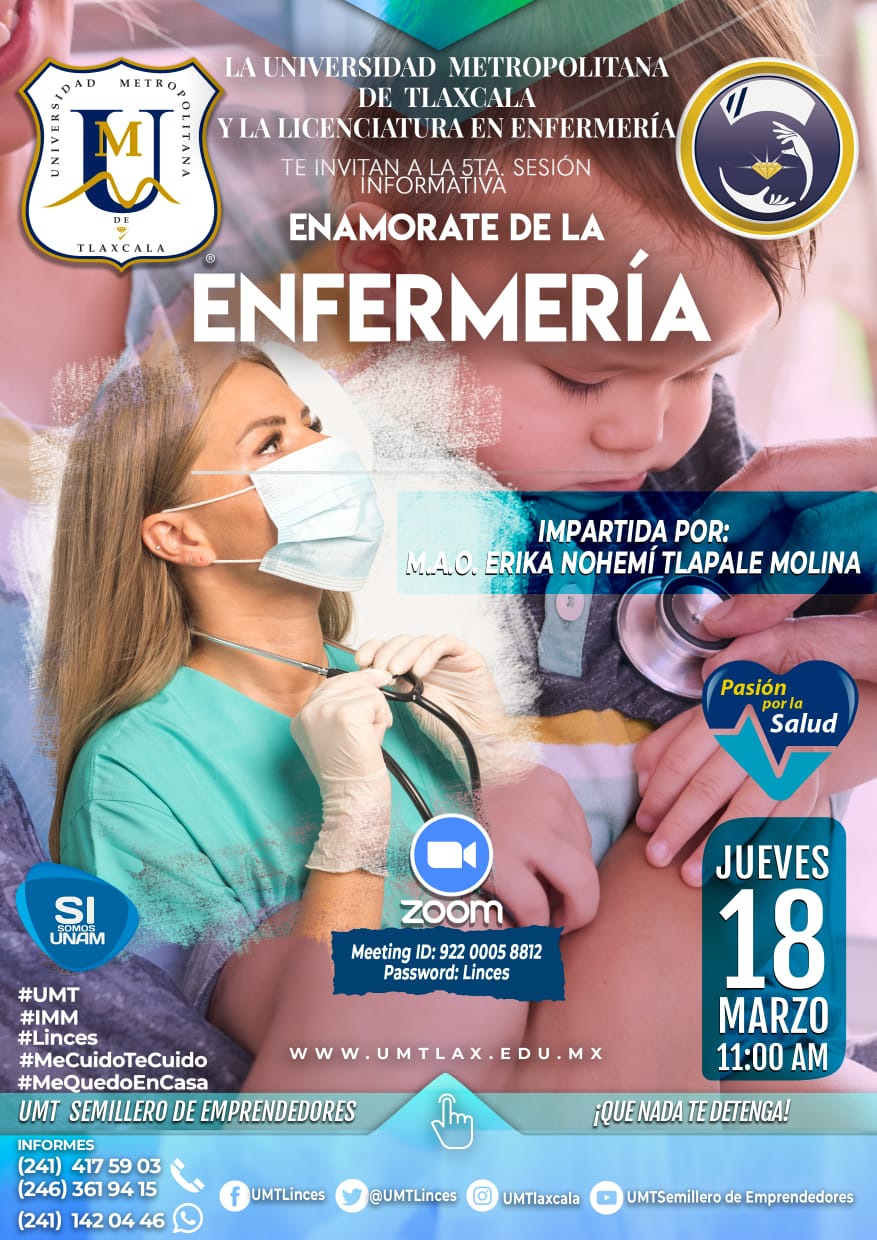 Forma parte de la 5ta sesión informativa de la @Universidad Metropolitana de Tlaxcala y la licenciatura en Enfermería incorporada a la UNAM. Conoce toda la información y detalles de la licenciatura ¡Conéctate!