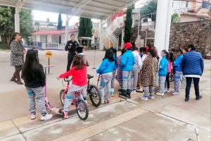 De manera paralela, se realizaron actividades de proximidad social en la Escuela Primaria “José Vasconcelos”, ubicada en la colonia La Joya, donde niñas y niños participaron en dinámicas informativas sobre normas de tránsito, uso correcto de espacios peatonales y medidas básicas de seguridad vial.