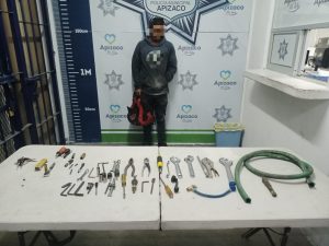 Apizaco, Tlax; 14 de febrero de 2023 (PulsoRed) Los recorridos de prevención del delito y proximidad social que realizan a diario los oficiales de la Dirección de Seguridad Pública Municipal, Vialidad y Transporte de Apizaco, permitieron frustrar un robo de herramientas y asegurar al presunto responsable, en la colonia Jardines.