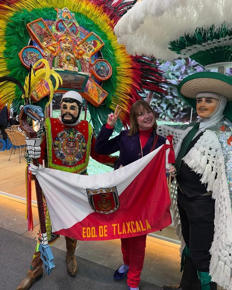 «Estamos muy contentos por inaugurar el pabellón de México y el stand de nuestro bello estado de Tlaxcala en el FITUR 2025, donde causó emoción al mostrar las alfombras de arte efímero de Huamantla, nuestros huehues de Carnaval, las artesanías y nuestra gastronomía», dijo.