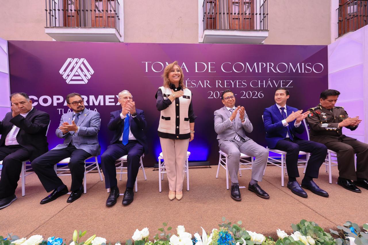 Tlaxcala, Tlax; 11 de julio de 2024 (PulsoRed) La gobernadora Lorena Cuéllar Cisneros asistió a la toma de compromiso 2024-2026 de la Confederación Patronal de la República Mexicana (Coparmex) en Tlaxcala, en la que se tomó protesta a los nuevos integrantes del Consejo Directivo, a quienes refrendó su compromiso de trabajar conjuntamente para fortalecer la competitividad, la inversión y la creación de empleos.