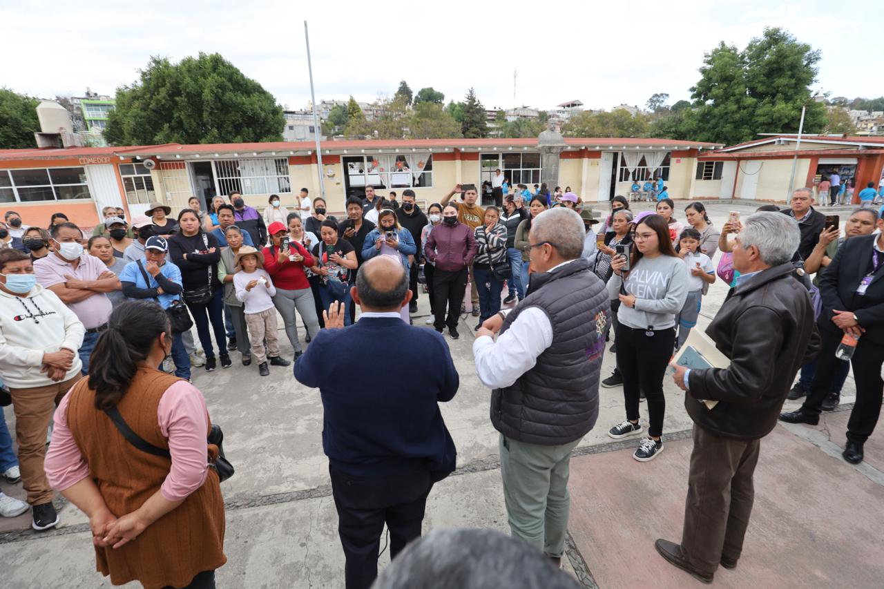 El titular de la Secretaría de Educación Pública del Estado y de la Unidad de Servicios Educativos del Estado de Tlaxcala (SEPE-USET), Homero Meneses Hernández, informó ante madres y padres de familia que el proceso de reubicación obedece a una decisión preventiva y técnica, tomada con base en evaluaciones de riesgo emitidas por autoridades de protección civil.