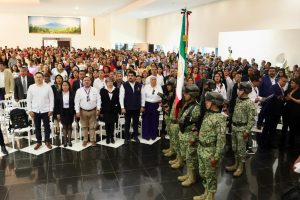 En el evento, también estuvieron presentes autoridades educativas, sindicales, diputados locales y de la 23 Zona Militar, así como familiares de los galardonados.