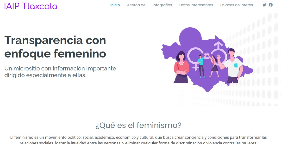 El micrositio “Transparencia con enfoque femenino” puede consultarse a través de la siguiente liga electrónica: https://iaiptlaxcala.org.mx/micrositios/mujeres/