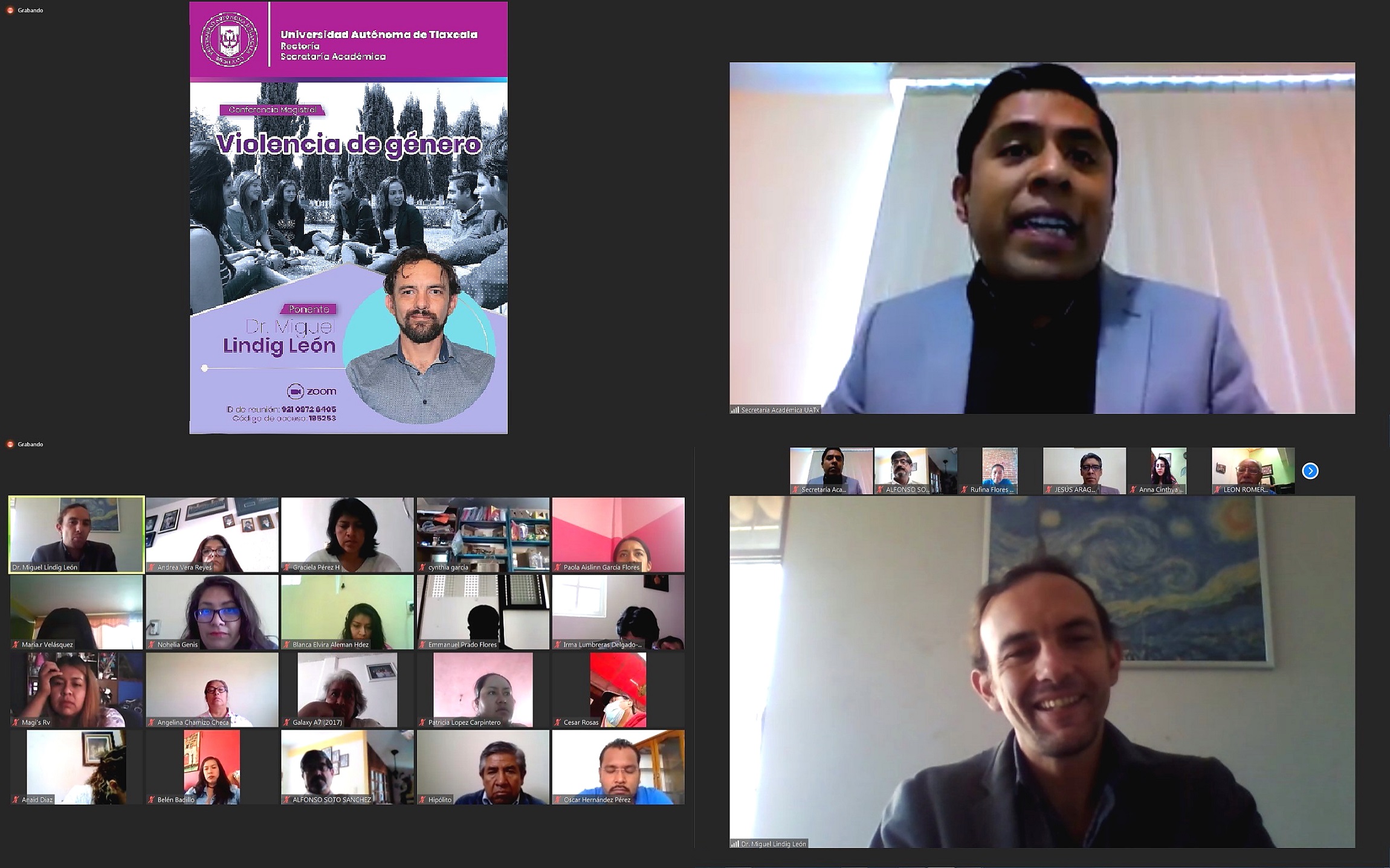 Tlaxcala, Tlax; 29 de abril de 2021 (Pulso) Para dar continuidad a las estrategias que coadyuven a la construcción de ambientes sanos de convivencia de toda su comunidad, la Universidad Autónoma de Tlaxcala (UATx), a través de la Secretaría Académica, que encabeza el Dr. Enrique Vázquez Fernández, efectúo la conferencia magistral intitulada: “Violencia de género”, impartida por el Dr. Miguel Lindig León, catedrático de esta institución.