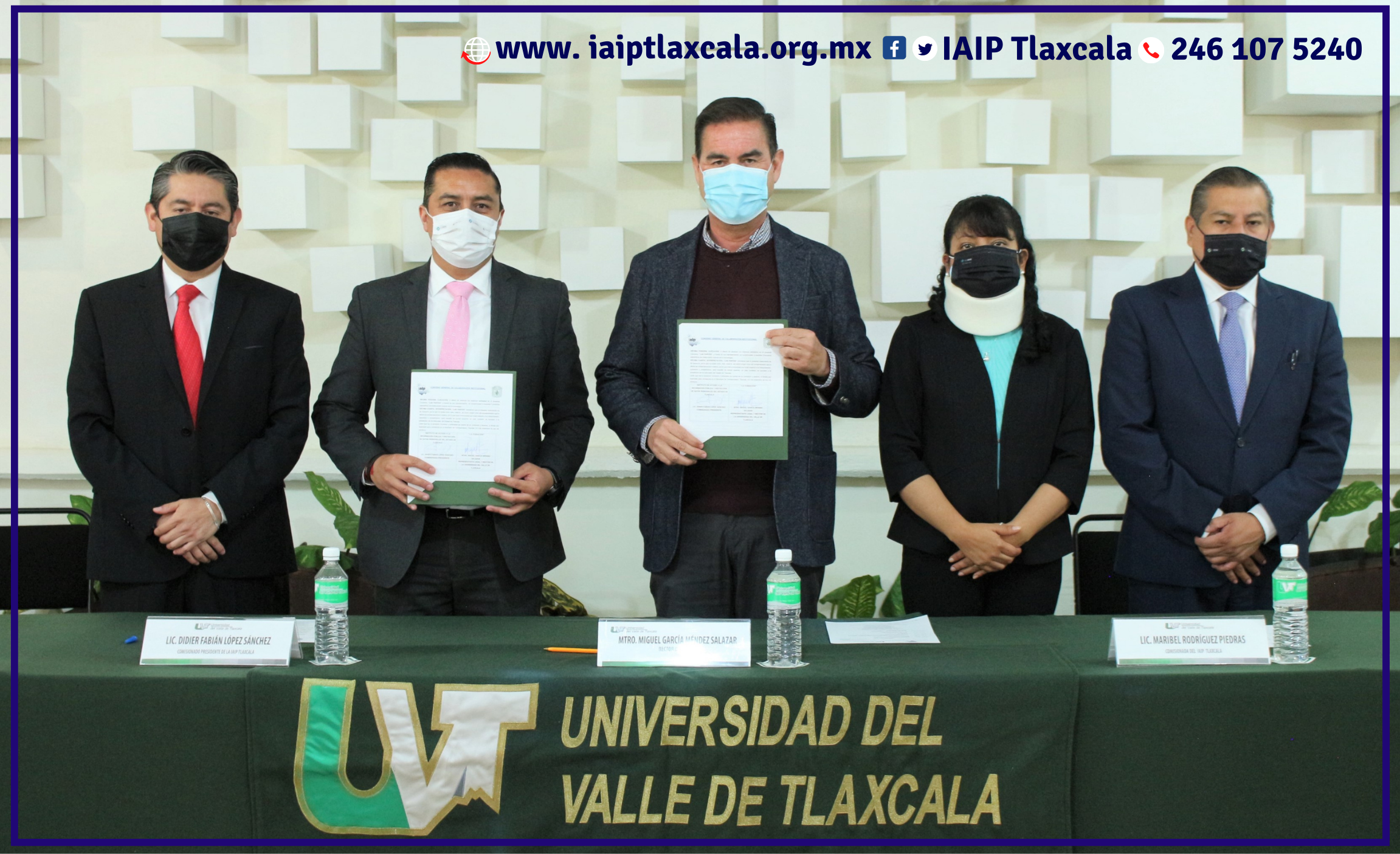 Tlaxcala, Tlax; 8 de noviembre de 2021 (Pulso Red) El Instituto de Acceso a la Información Pública y Protección de Datos Personales del Estado de Tlaxcala (IAIP) signó un convenio de colaboración con la Universidad del Valle de Tlaxcala (UVT), que tiene como objetivo la elaboración de programas de capacitación, investigación y difusión, que fortalezcan la cultura de la transparencia, acceso a la información, protección de datos personales y gestión de archivos.