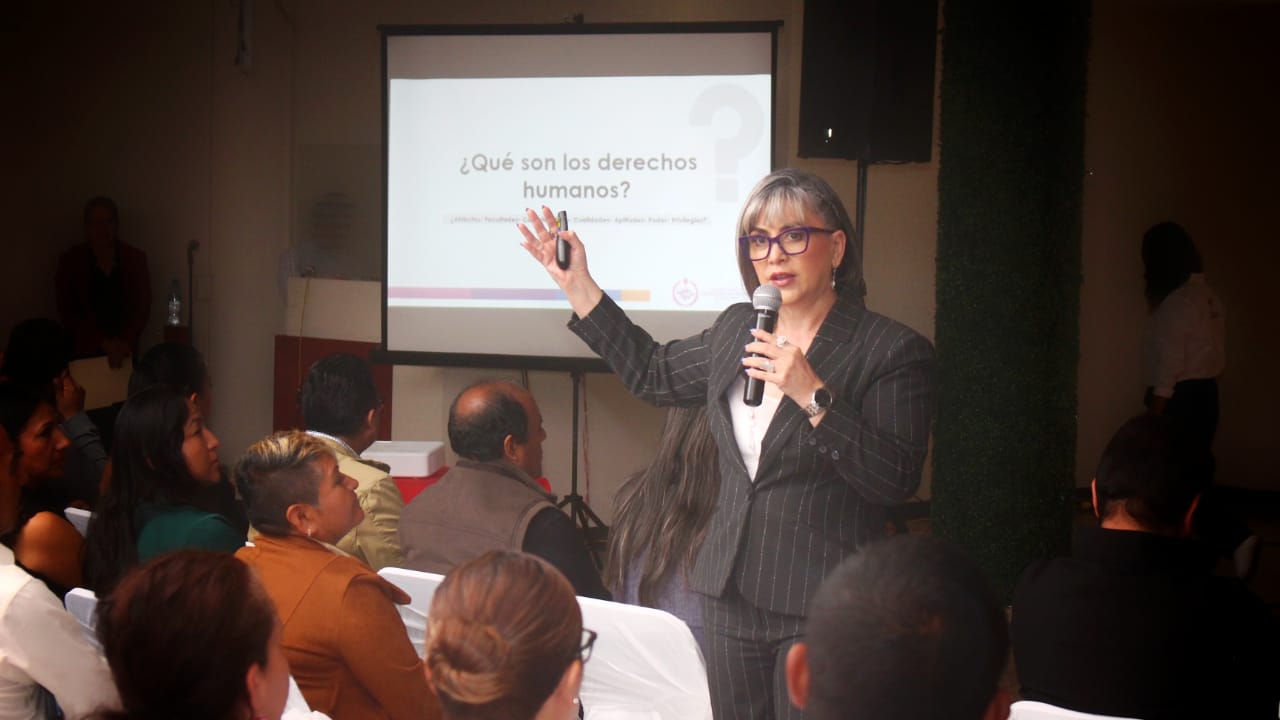 Ante el personal de dicha alcaldía, encabezado por la presidenta municipal, y en el marco del Día internacional de la paz, la Ombudsperson habló de la necesidad de que las personas servidoras públicas reconozcan lo que son los derechos humanos y concienticen “la importancia de relacionarse de manera sana con las personas y con su ecosistema, para contribuir en la creación de una cultura de paz”.
