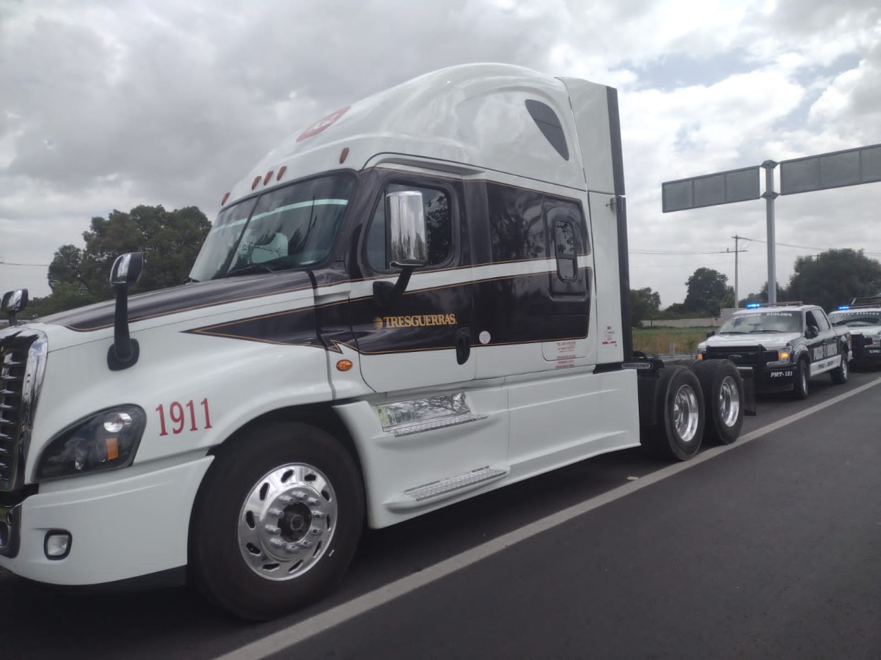 Por último, en el municipio de Totolac, fue asegurado un tracto camión Freightliner, con placas de circulación del Servicio Público Federal 75AM6K, luego de haber sido abandonado con huellas de desvalijamiento.