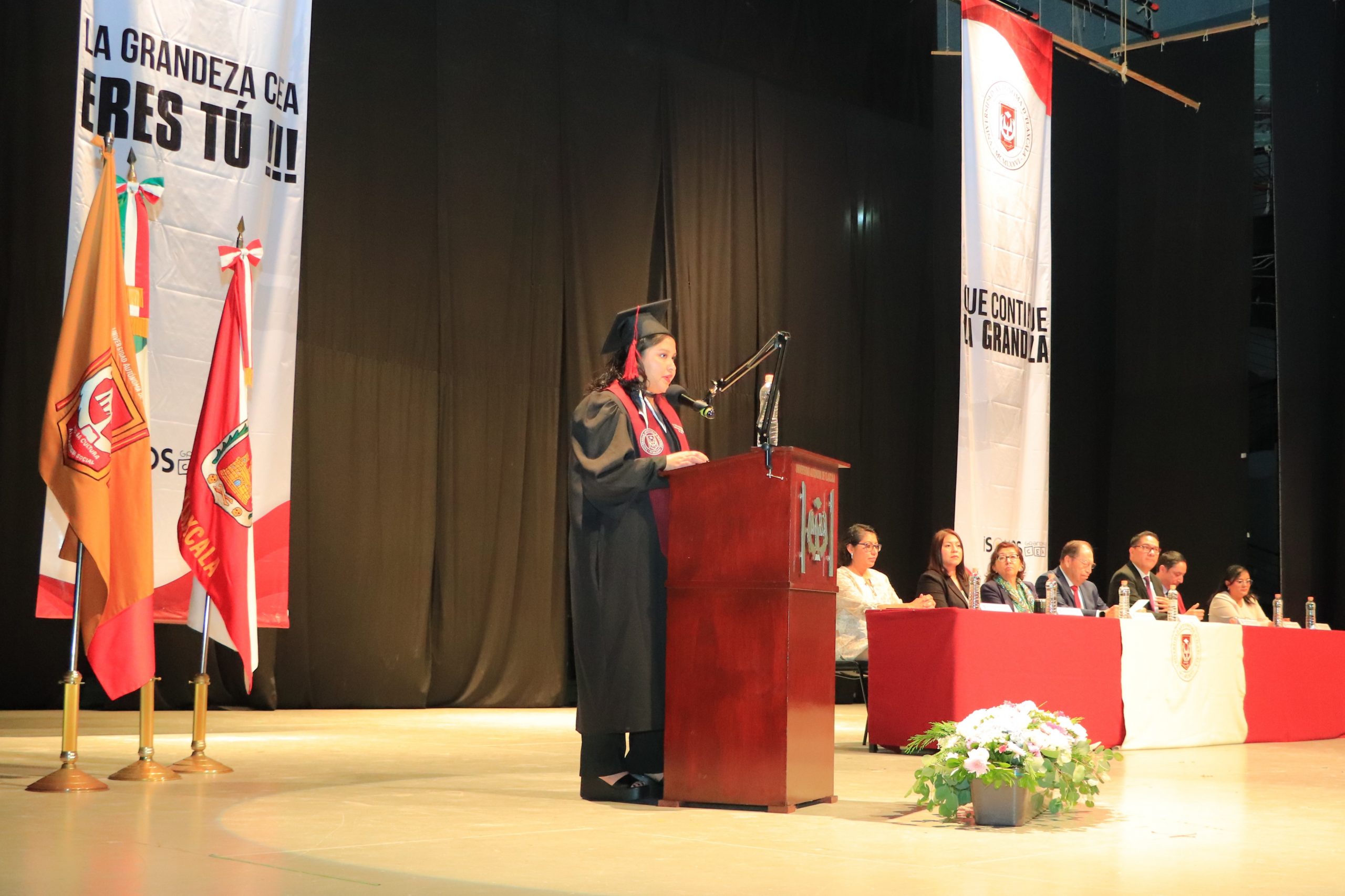 A su vez, Maribel Hernández, estudiante de la Licenciatura en Turismo Internacional, en representación de los graduados de la generación 2021-2025, agradeció a los docentes por haber compartido con ellos su experticia y sabiduría, y también a los padres de familia por darles la oportunidad de contar con una preparación profesional y contar con mejores oportunidades para su crecimiento personal.